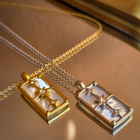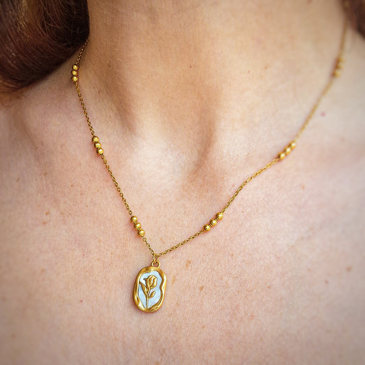 La collezione di collane e girocolli GRAZIA si compone di ciondoli montati su catenine in acciaio 316L placcato oro 18k o argento 925 e di girocolli realizzate con perline di pietre dure, preziose o perle di fiume naturali.