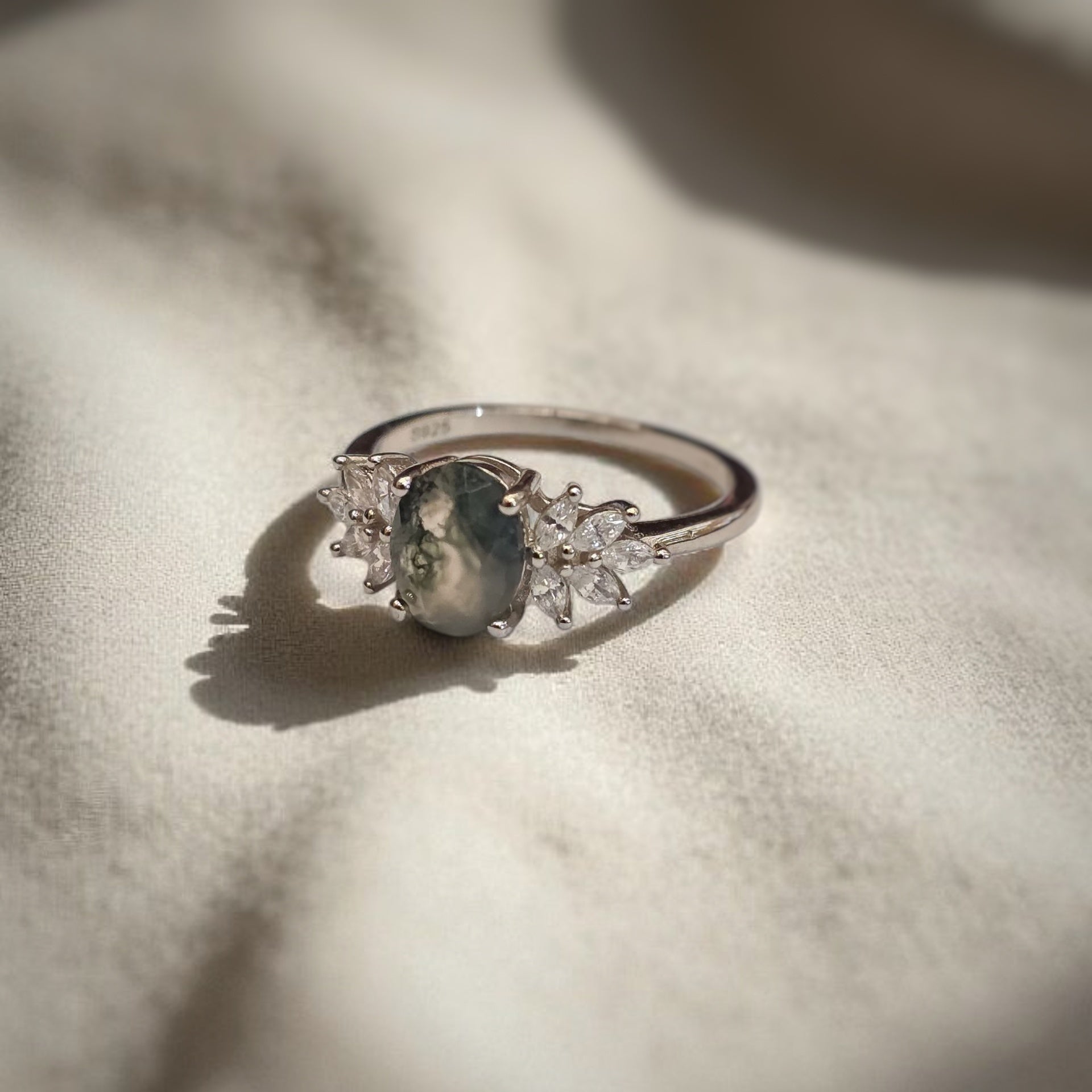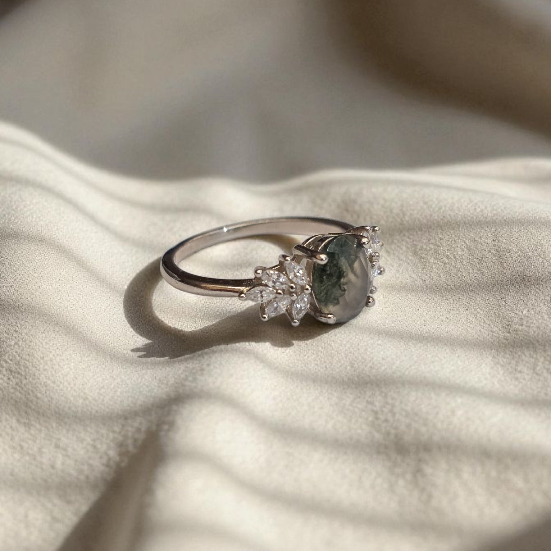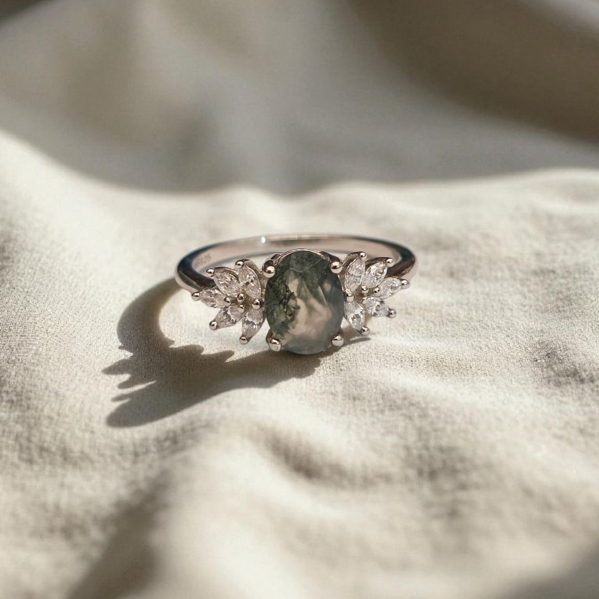 Agata muschio e zaffiri bianchi in un'elegantissima montatura stile art decò.