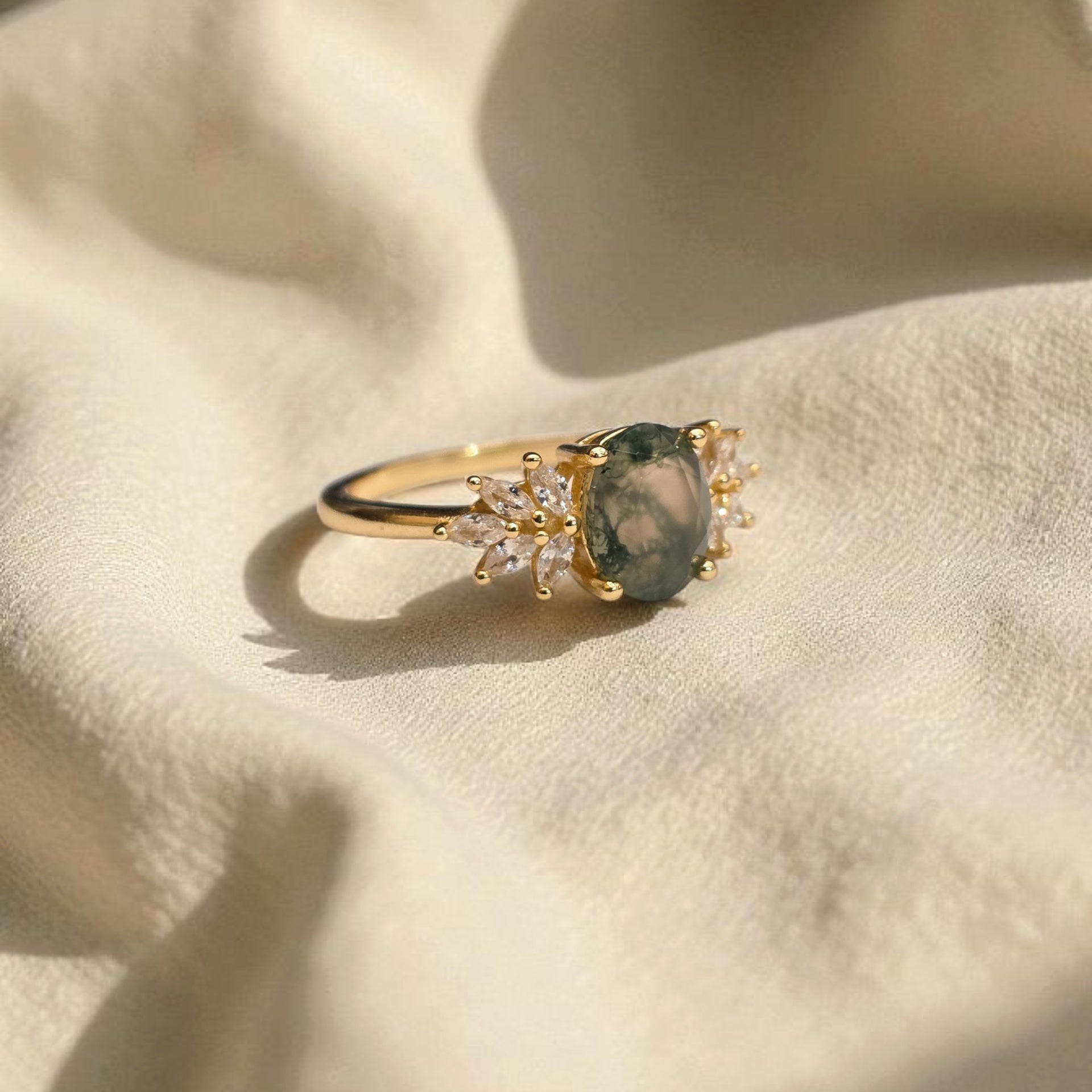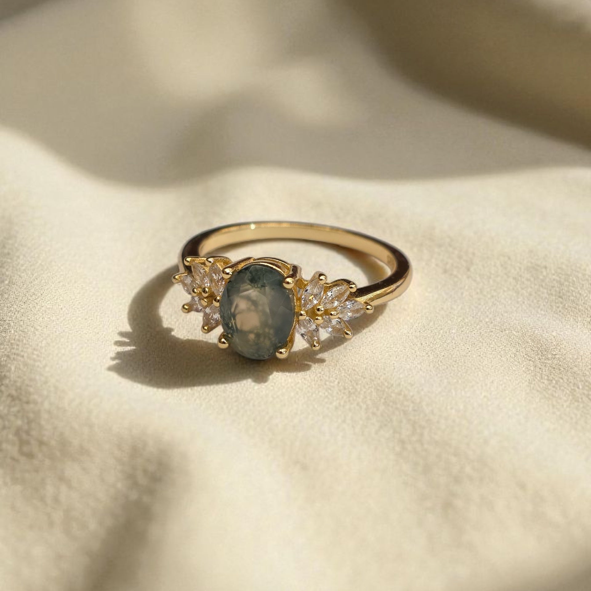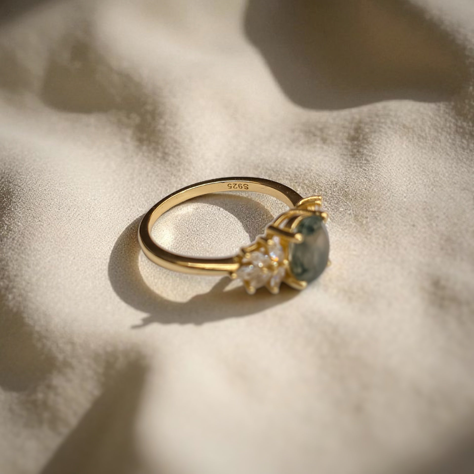 Anello realizzato artigialmente in argento 925 galvanizzato oro 24k con gemme preziose nel castone centrale.