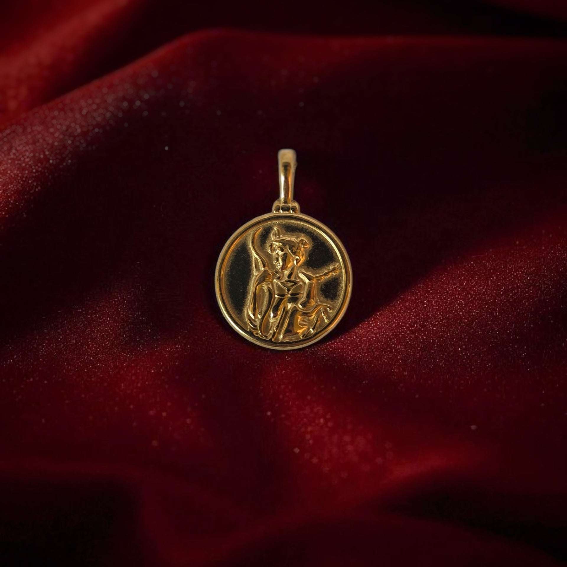 Realizzato in acciaio 316L galvanizzato oro 18k può essere indossato sulle catenine veneziane, a filo, a microrosario.