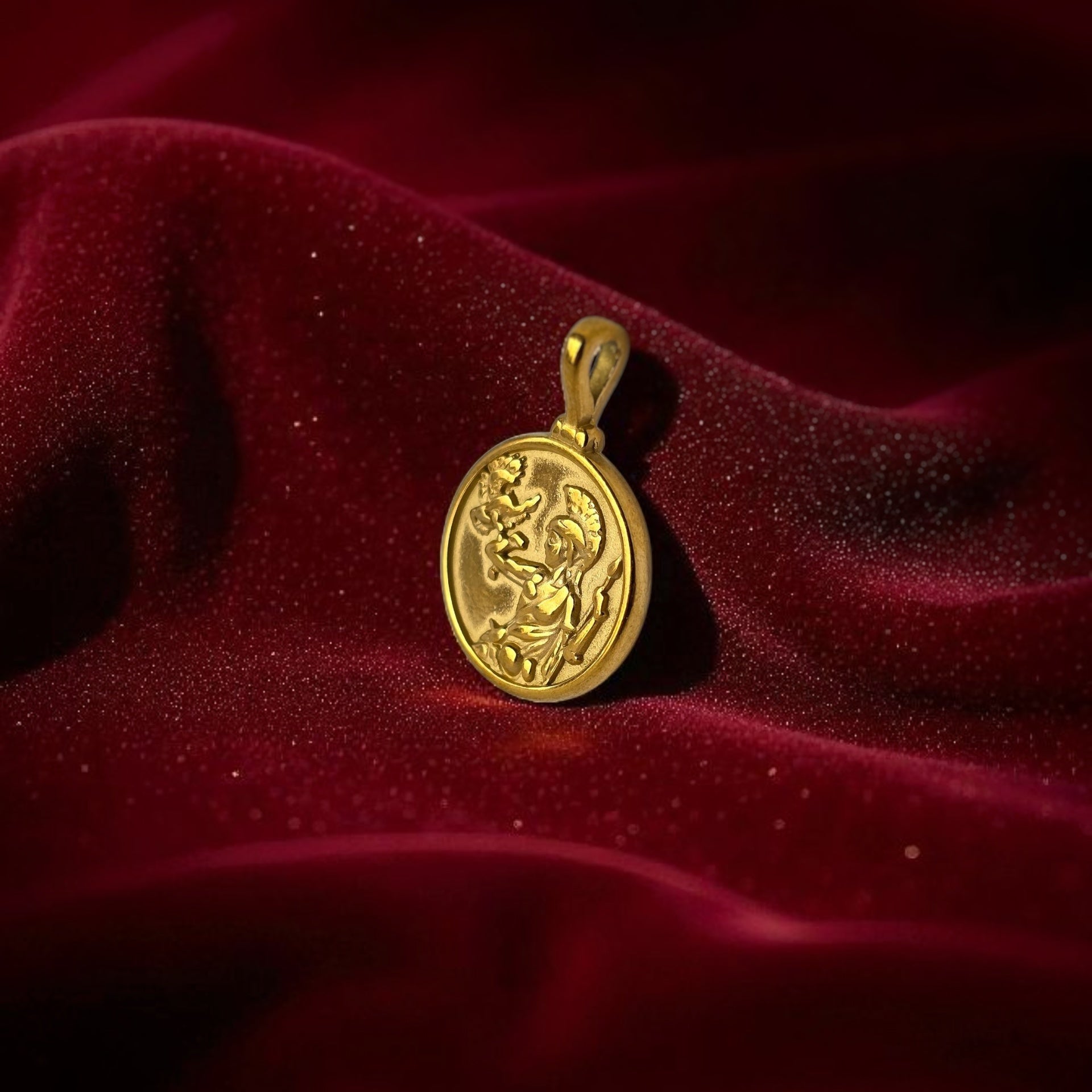 Realizzato in acciaio 316L galvanizzato oro 18k può essere indossato sulle catenine veneziane, a filo, a microrosario.