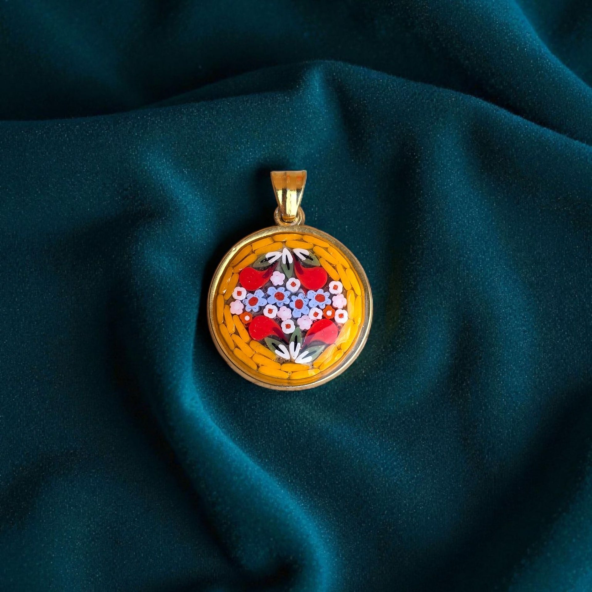 Ciondolino ovale realizzato completamente a mano, partendo dalla tecnica antica del micromosaico romano.