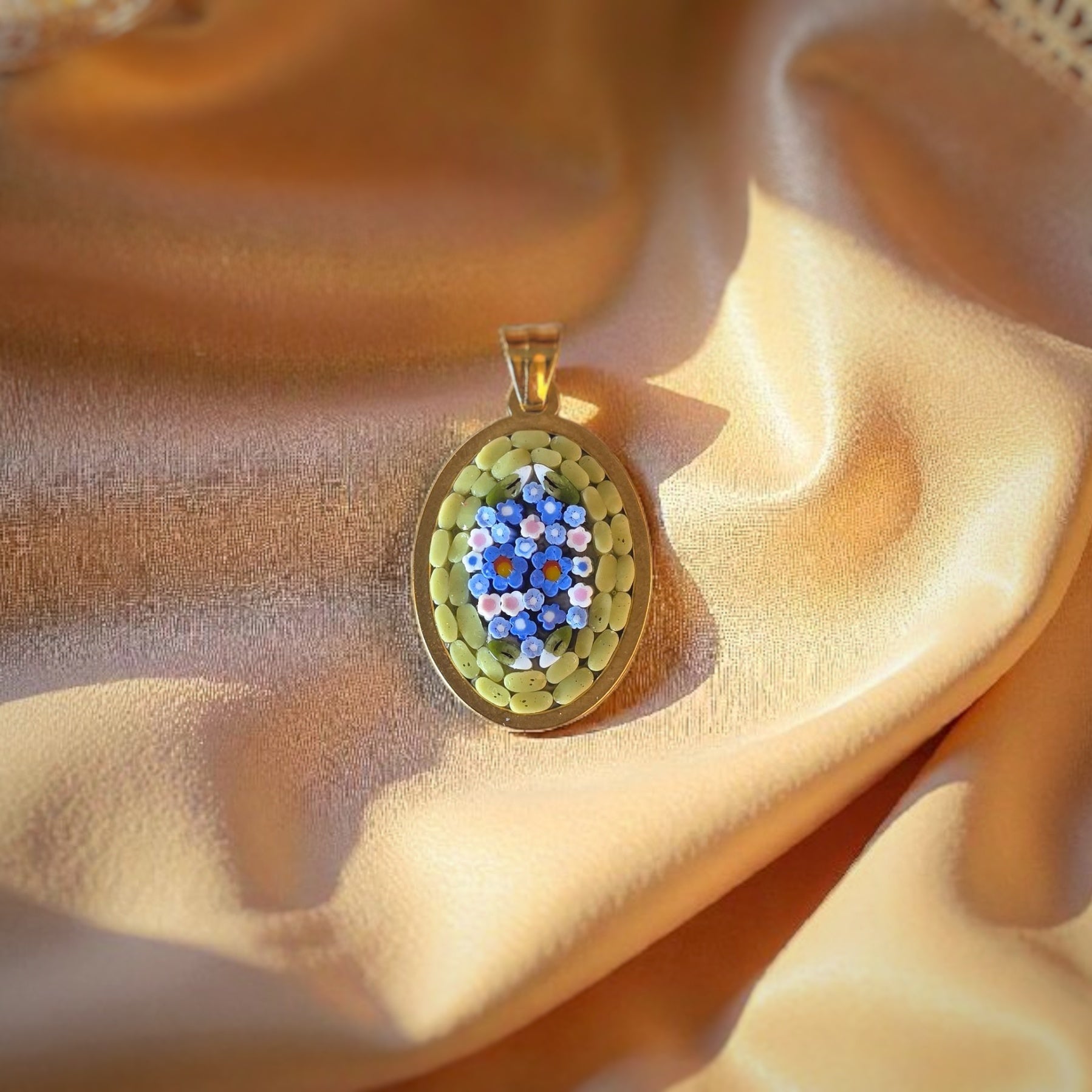 Ciondolino tondo realizzato completamente a mano, partendo dalla tecnica antica del micromosaico romano.