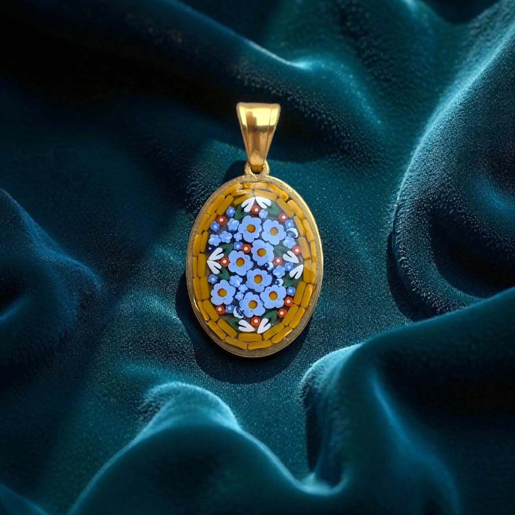 Ciondolo ovale realizzato completamente a mano, partendo dalla tecnica antica del micromosaico romano.