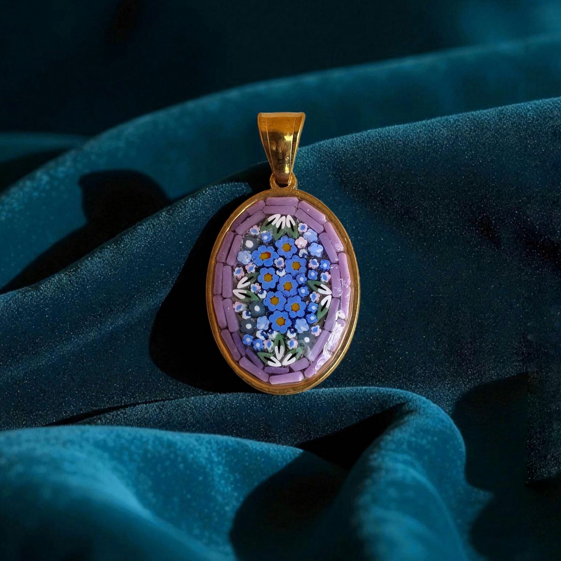 Ciondolo ovale realizzato completamente a mano, partendo dalla tecnica antica del micromosaico romano.