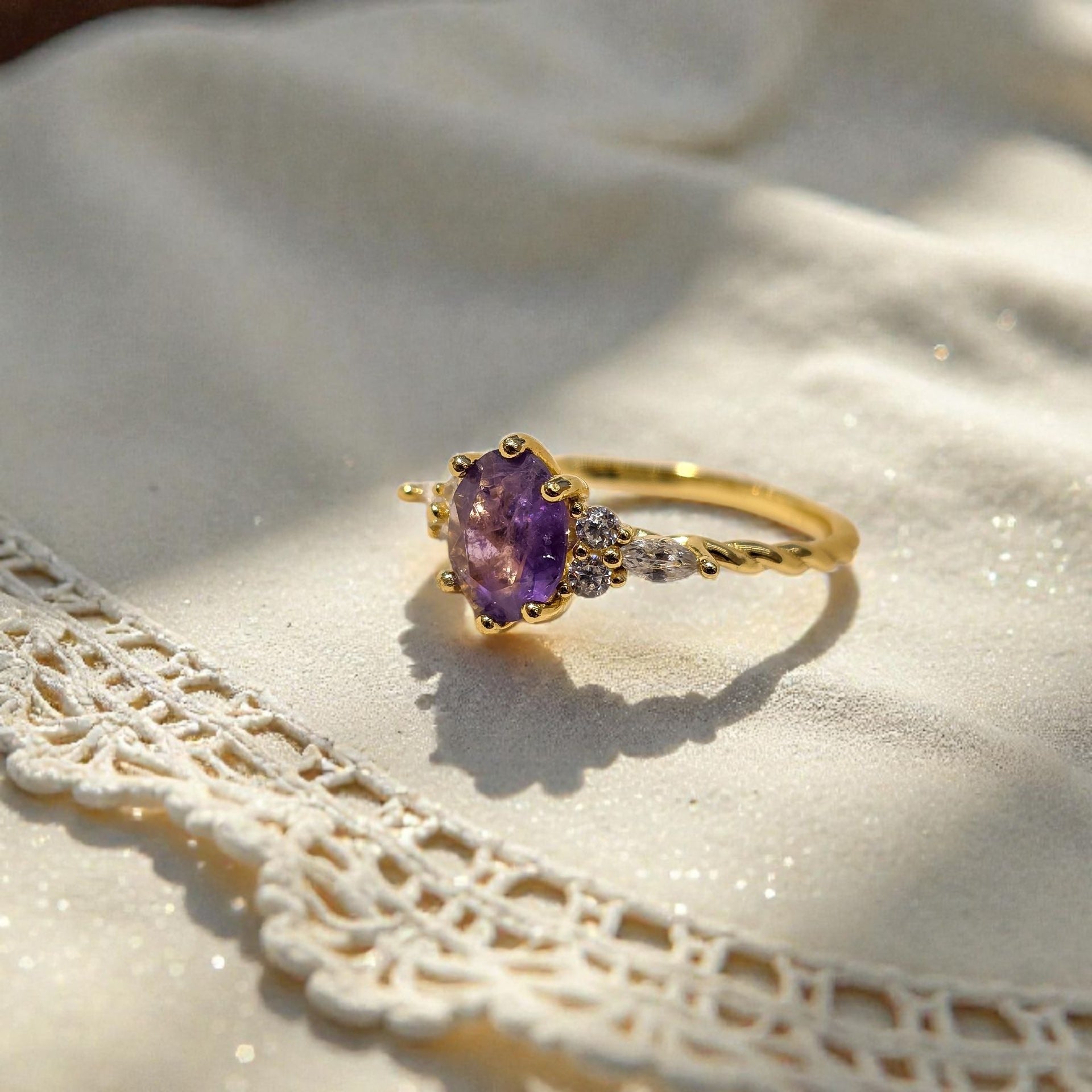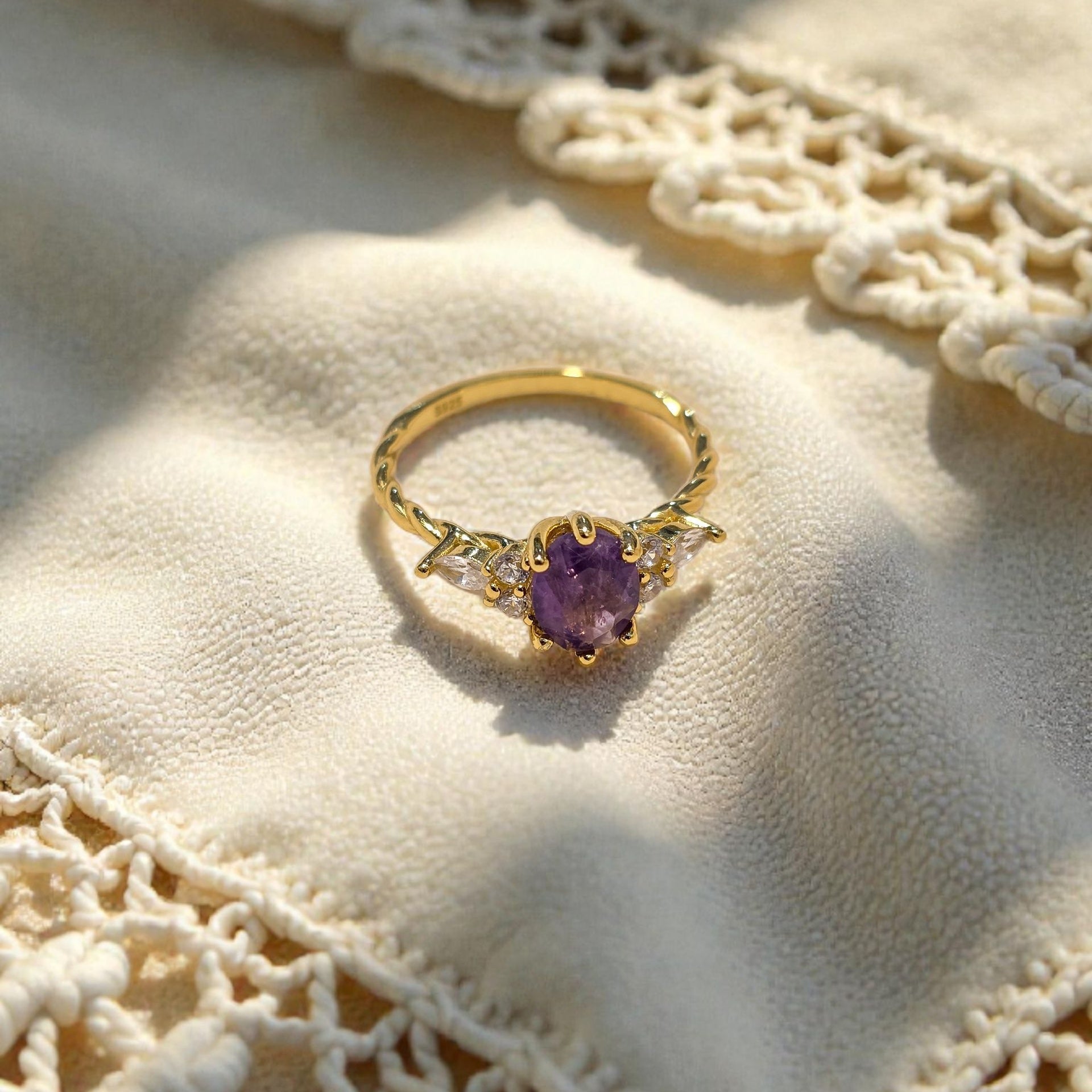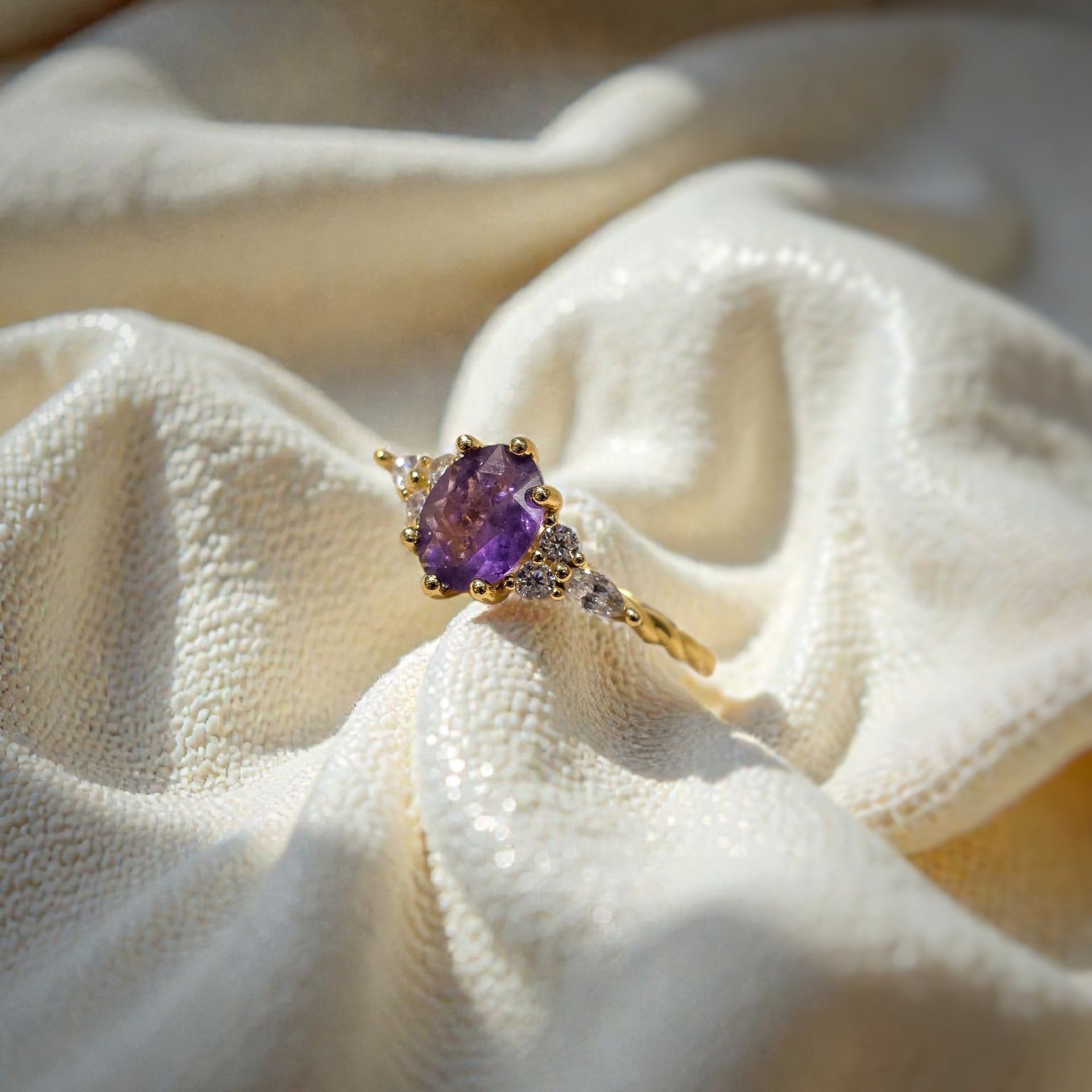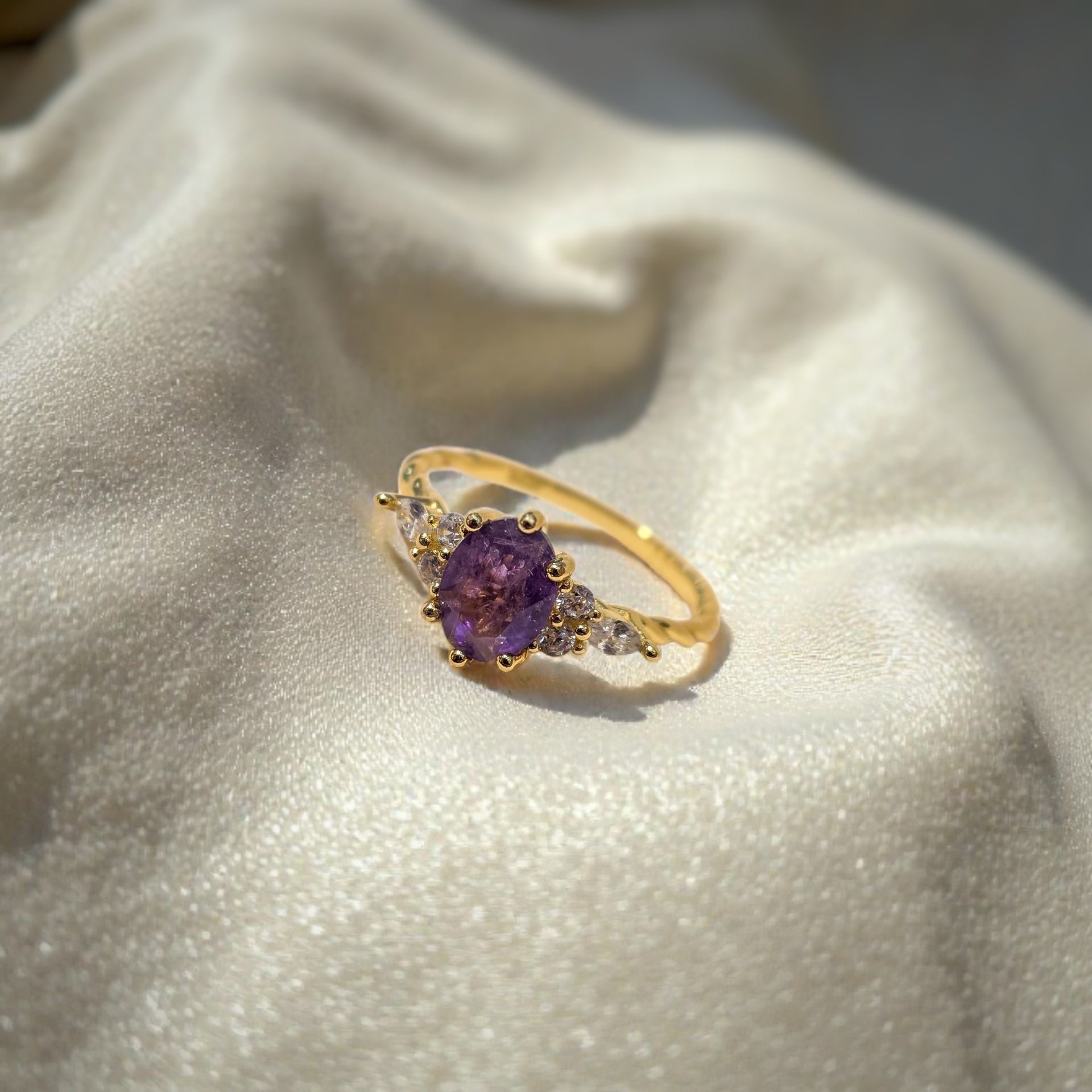 Anello realizzato artigialmente in argento 925 galvanizzato oro 24k con gemme preziose nel castone centrale.