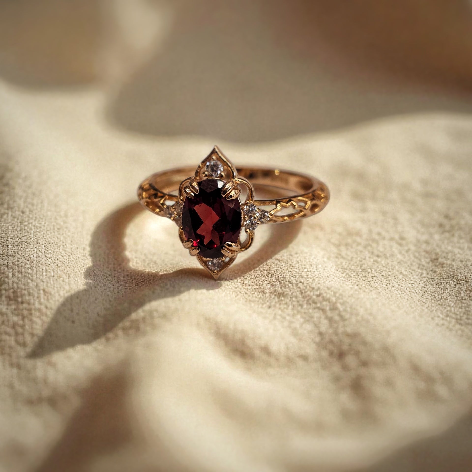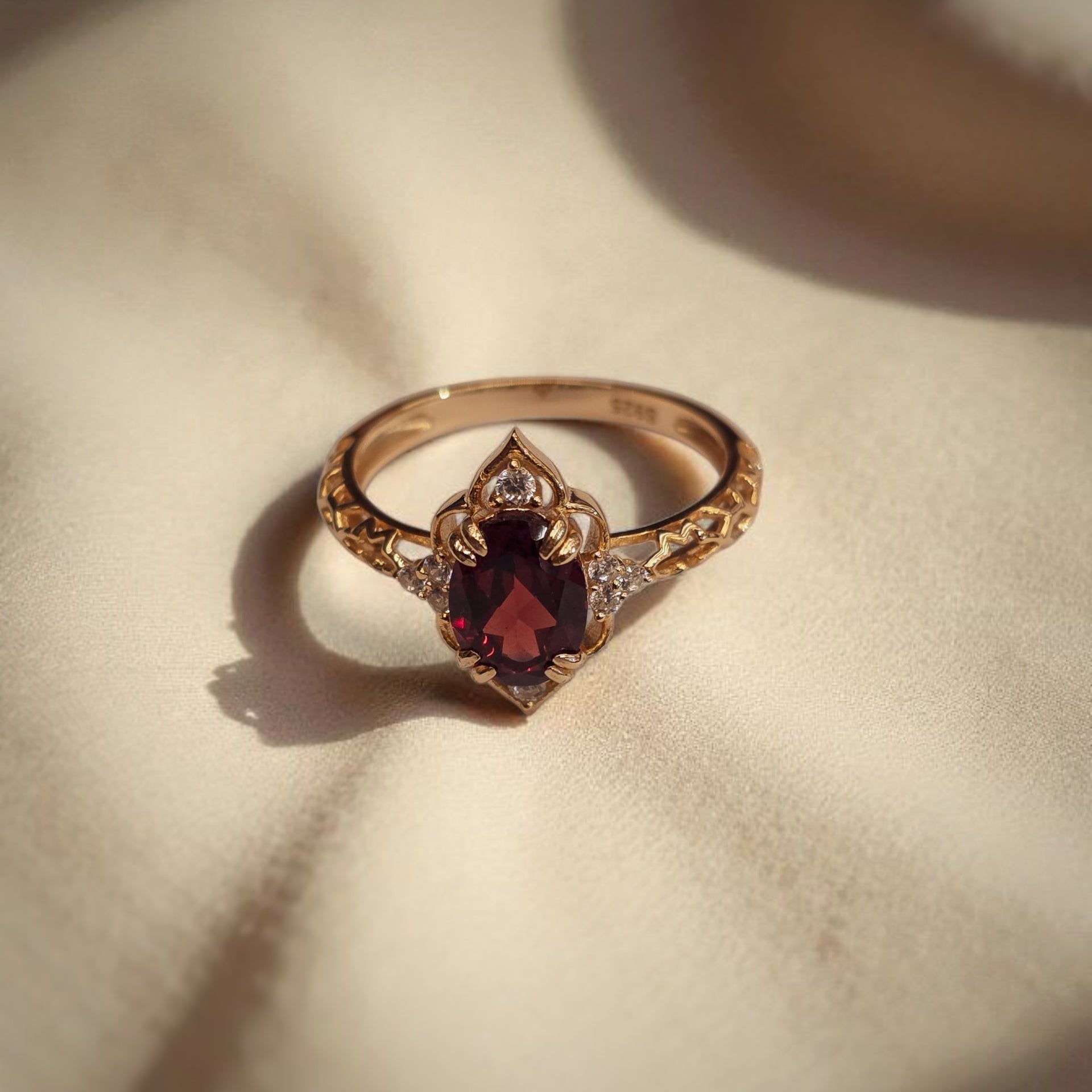 Anello realizzato artigialmente in argento 925 galvanizzato oro 24k con gemme preziose nel castone centrale.