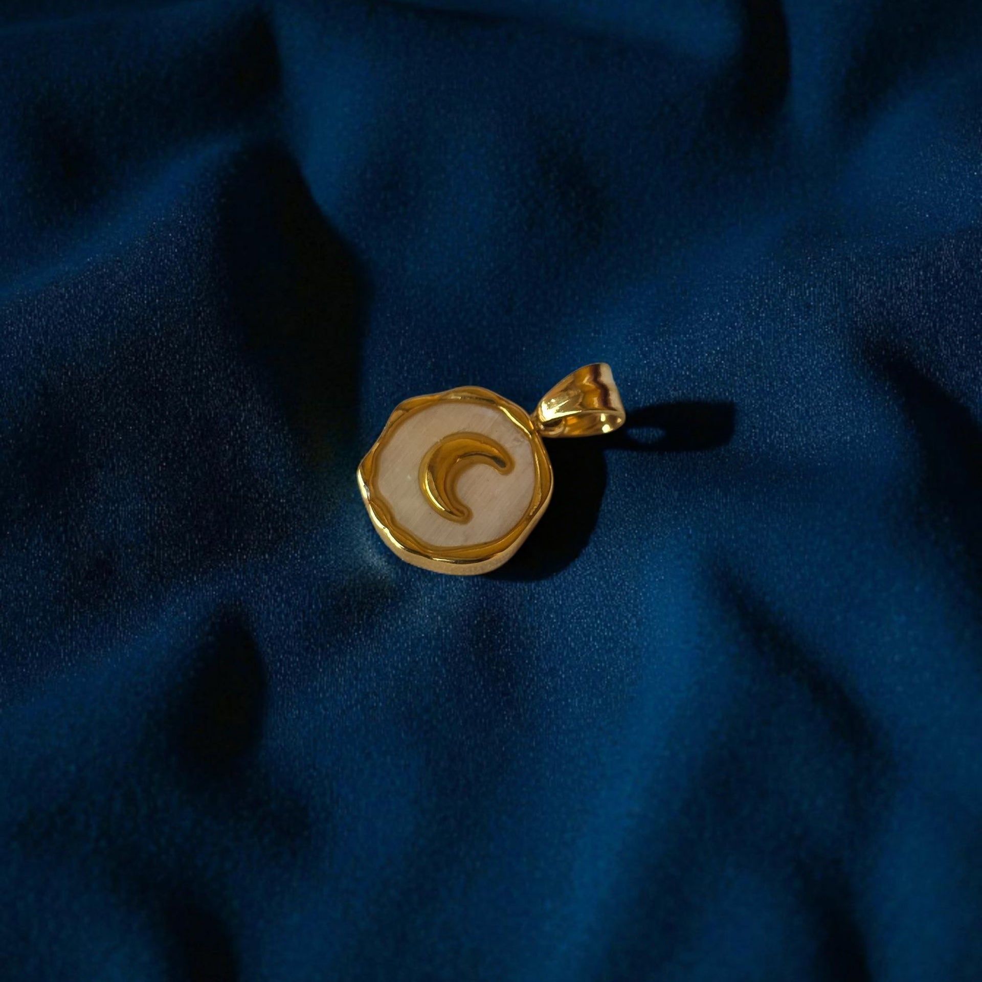 Questo piccolo ciondolino a forma di lunetta incarna la femminilità capace di rinnovarsi e trasformarsi, secondo i cicli della vita.