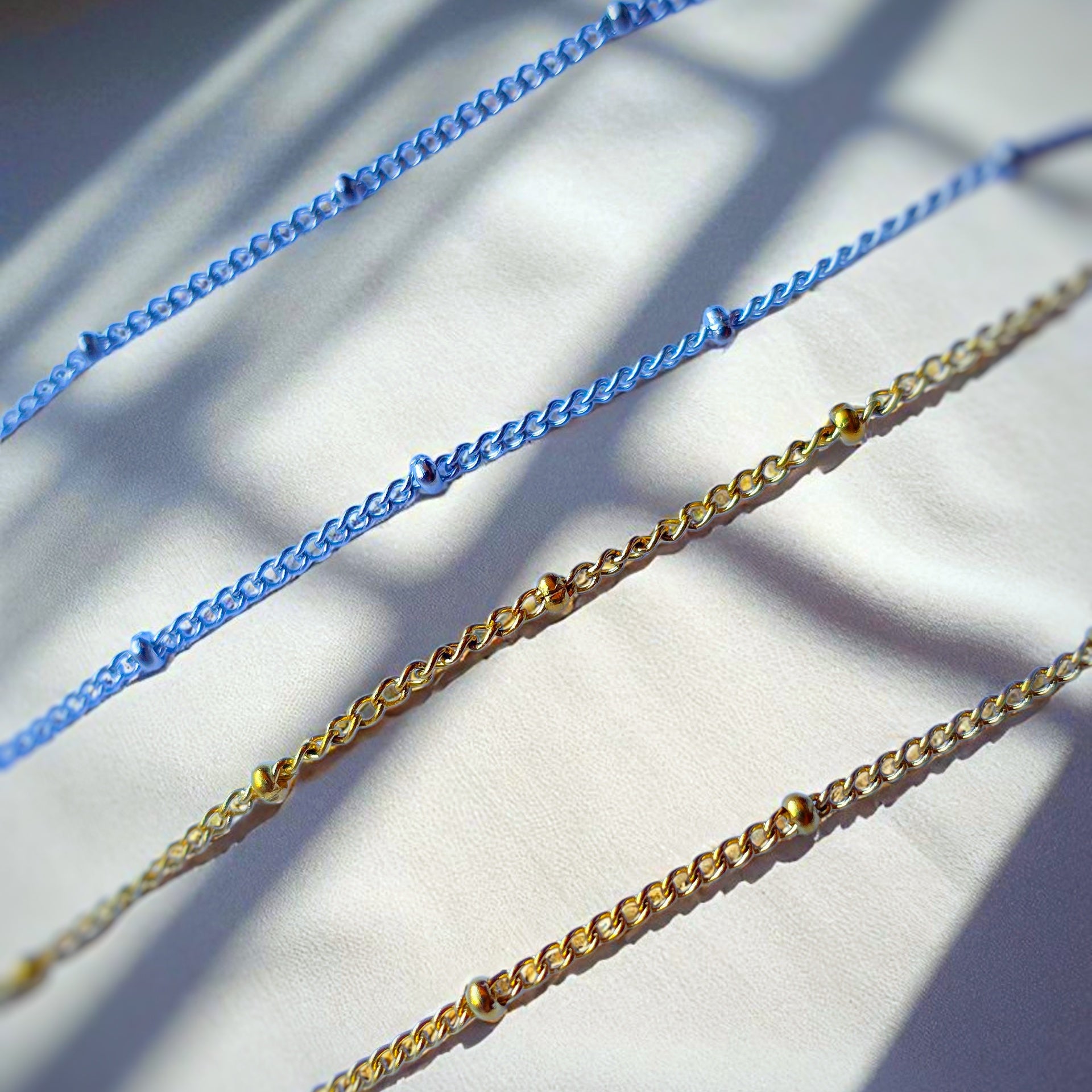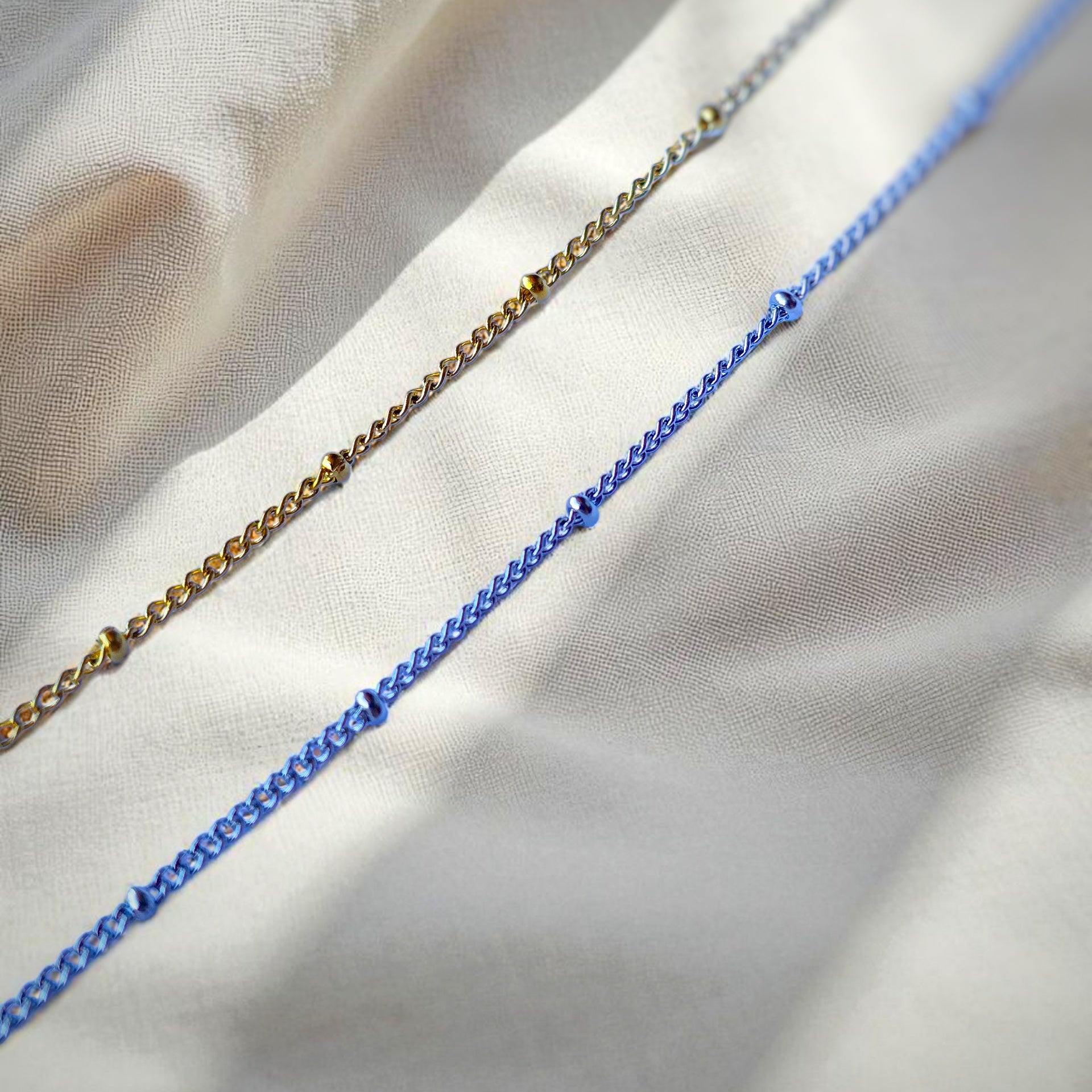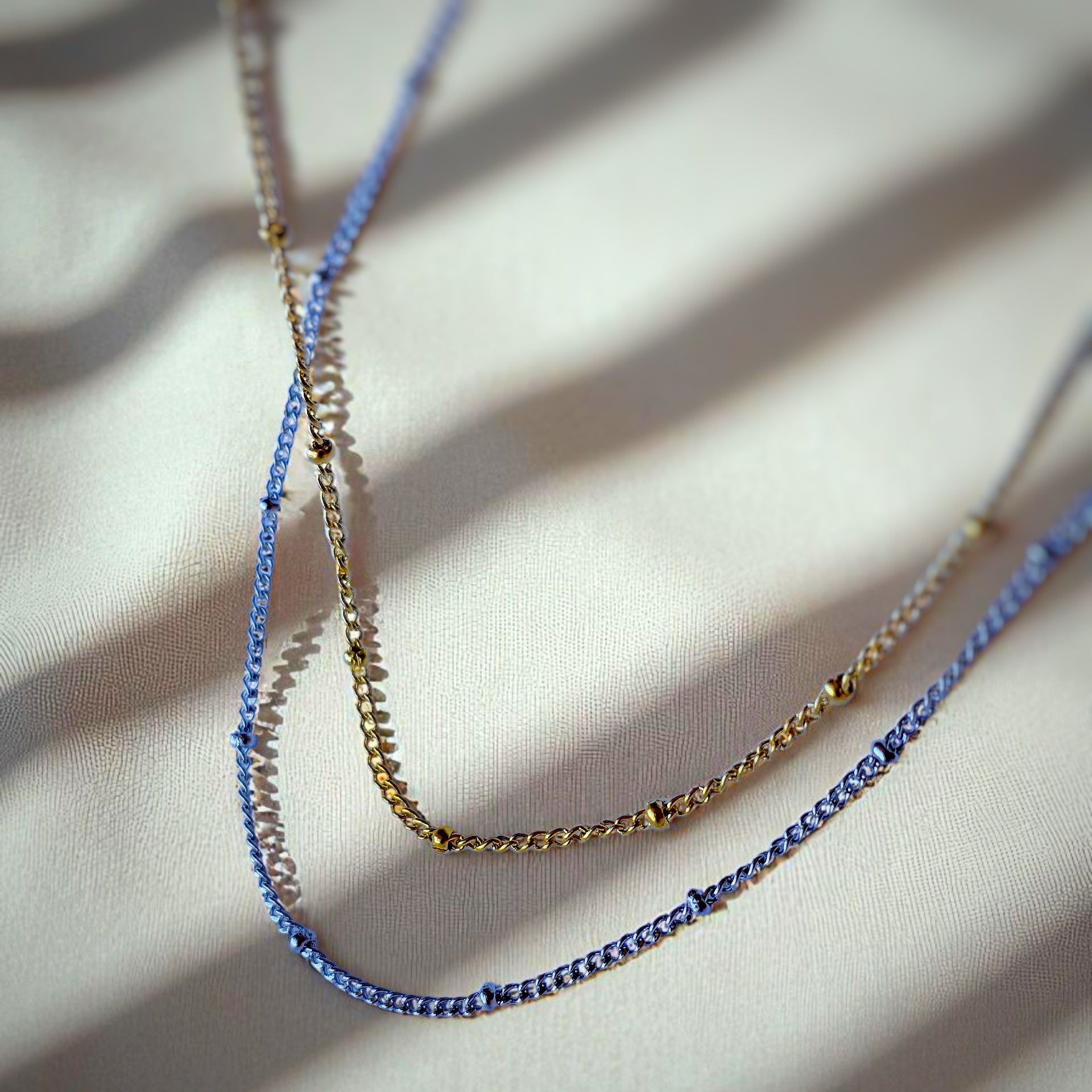 Catenina semplice a girocollo in acciaio 316L placcato oro 18k o argento 925: è costituita da una maglia veneziana inframmezzata da microsferette.