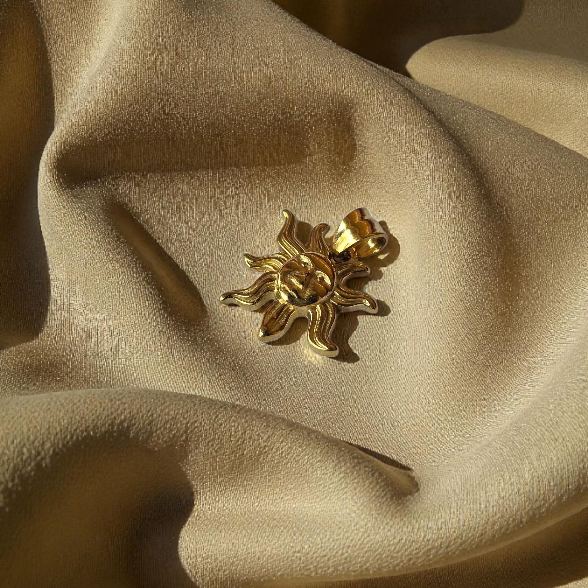Ciondolo a forma di fulgido Sole, spettinato dal vento.
